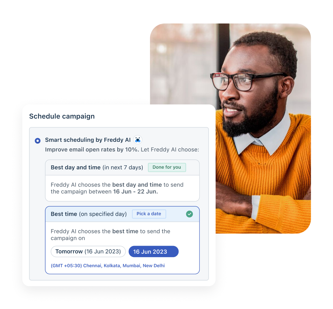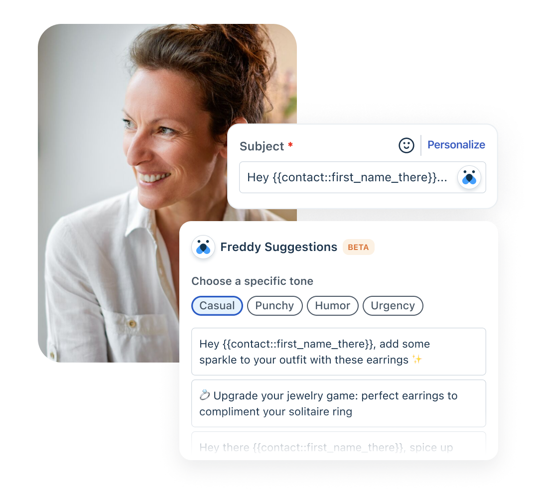 Identify the right audience and create personalized, high-converting campaigns at scale. Build efficiency with Freddy as your AI-powered assistant, enhancing your campaigns with precise insights and optimization.